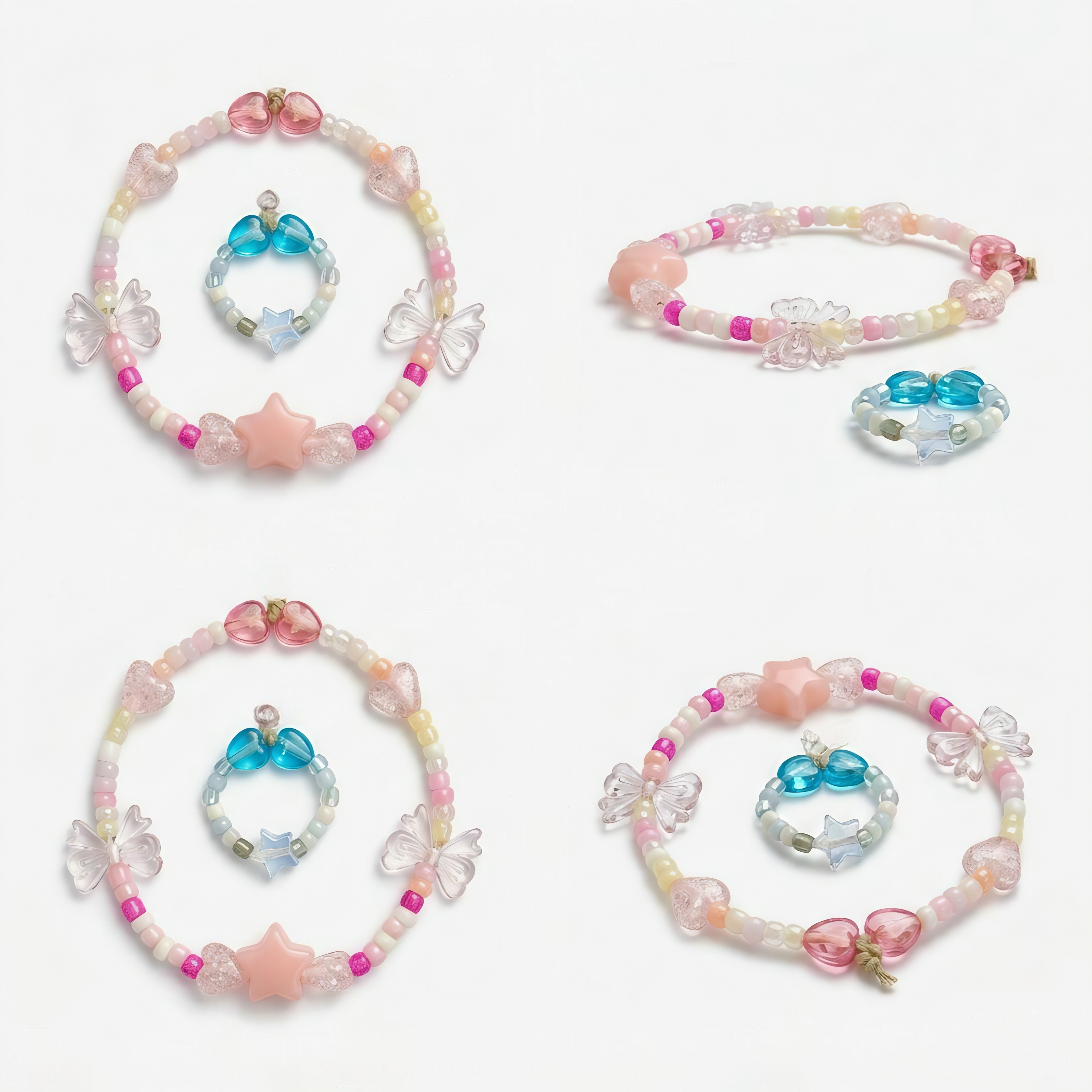งานแฮนด์เมดสุดพิเศษจากน้องๆ ป.6 โรงเรียนบ้านโนนผักชี ที่ให้คุณได้ออกแบบความน่ารักด้วยตัวเอง! สร้อยข้อมือและแหวนลูกปัดพาสเทล ประดับจี้รูปหัวใจ ดาว และผีเสื้อสุดคิวท์ จะใส่เองหรือสั่งเป็นของขวัญให้เพื่อนก็น่ารักจนใจเจ็บ